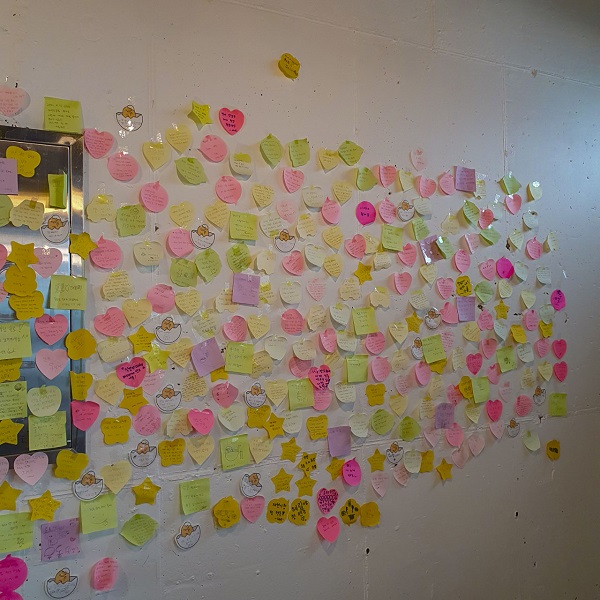 한쪽 벽에는 포스트잇이 붙어 있는데