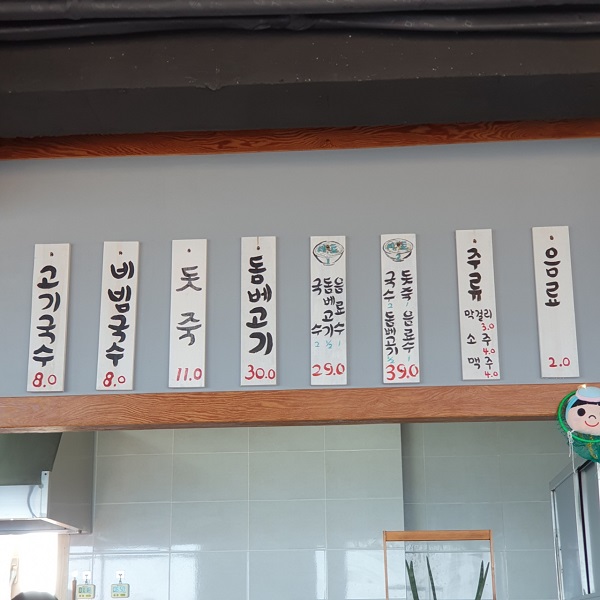 주 메뉴는 국수 종류와 돗죽, 돔베고기예요~