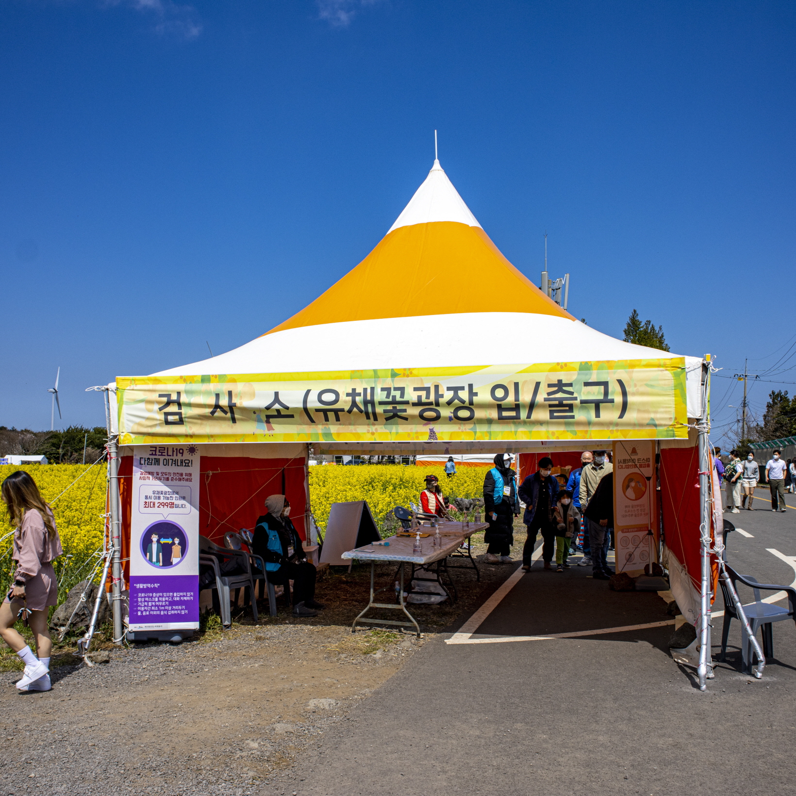 사진에 보이는 천막에서 발열체크를 하시고